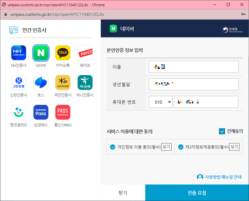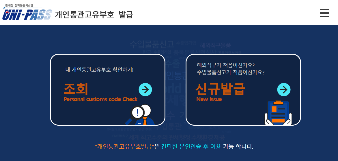 "개인통관고유부호발급"은 간단한 본인인증 후 이용 가능 합니다.
