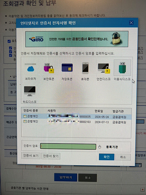 공동인증서로 로그인 하면 최종적으로 납부가 완료됩니다.