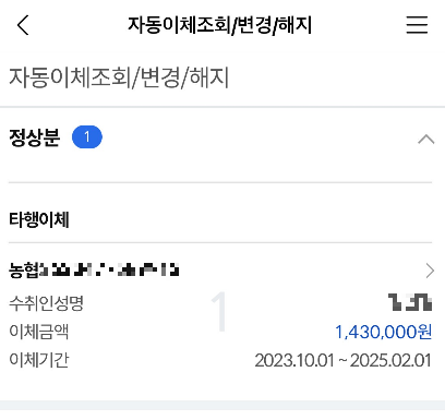 또 더이상 원하지 않는다면 자동이체를 해지할 수도 있으니 해당 메뉴를 잘 기억하시길 바랍니다.
