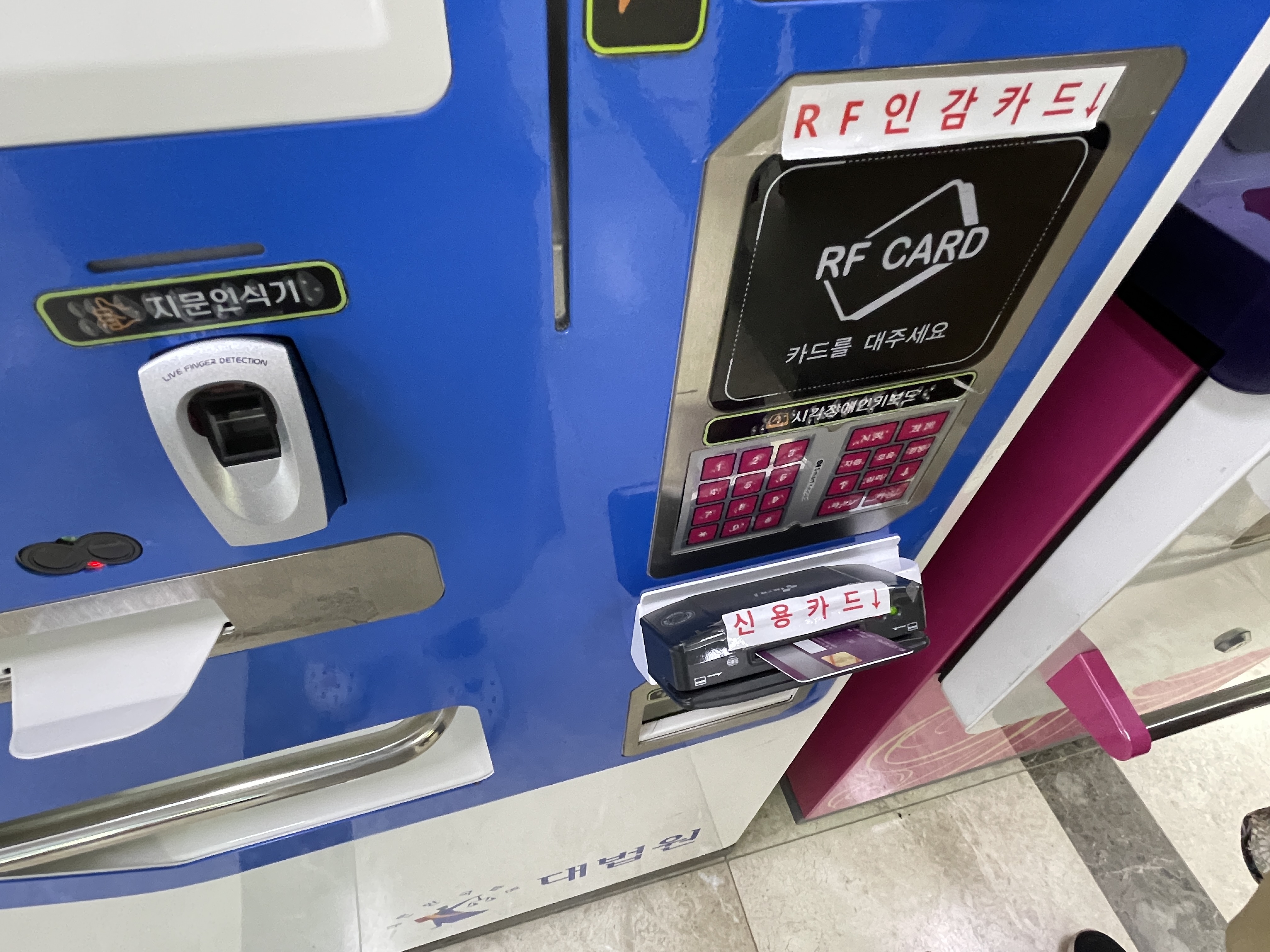 저는 RF인감카드이기 때문에 준비한 카드를 수신기에 댑니다.