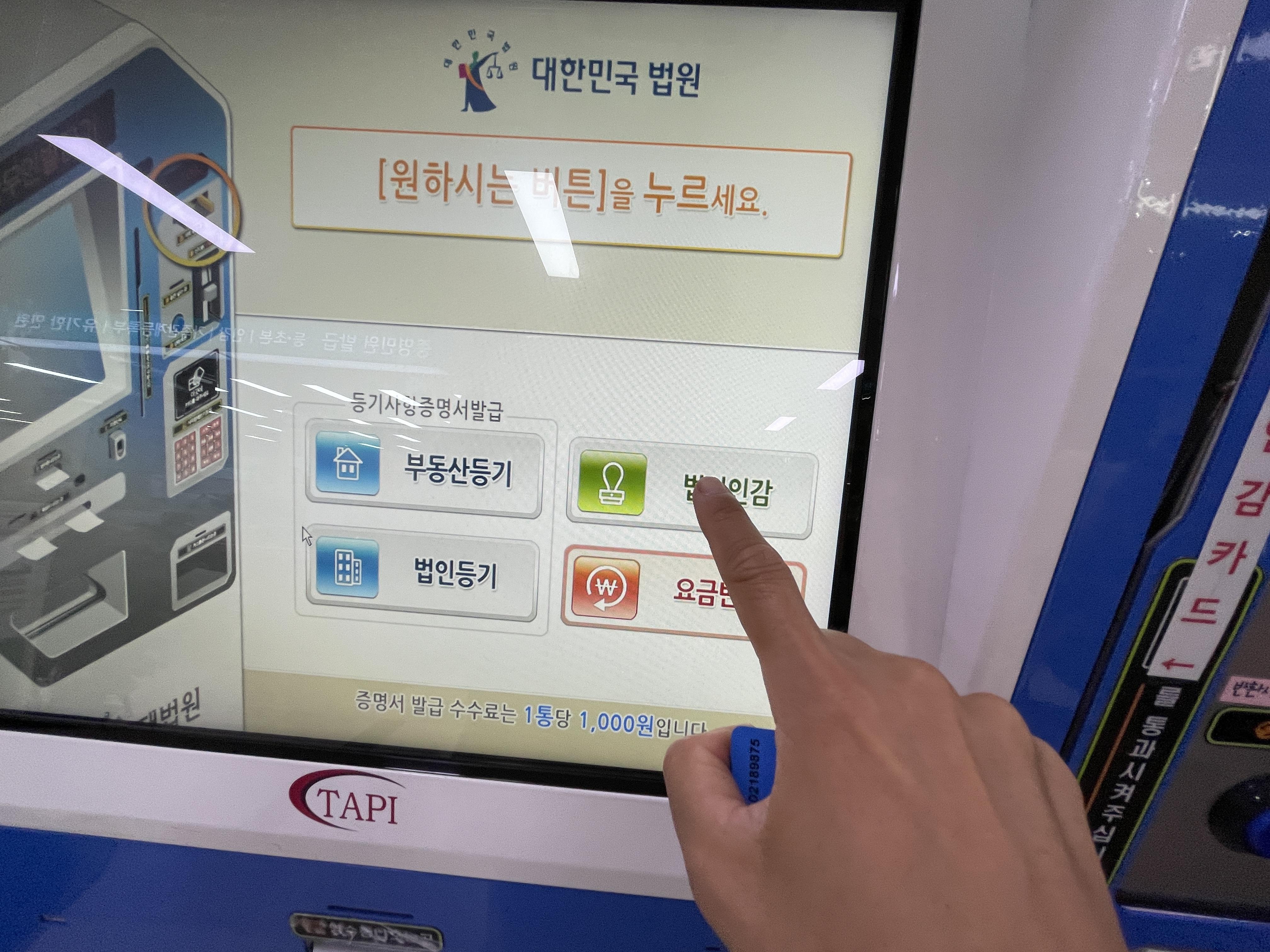 법인인감증명서 발급을 위한 무인발급기 등기소 확인하는 방법