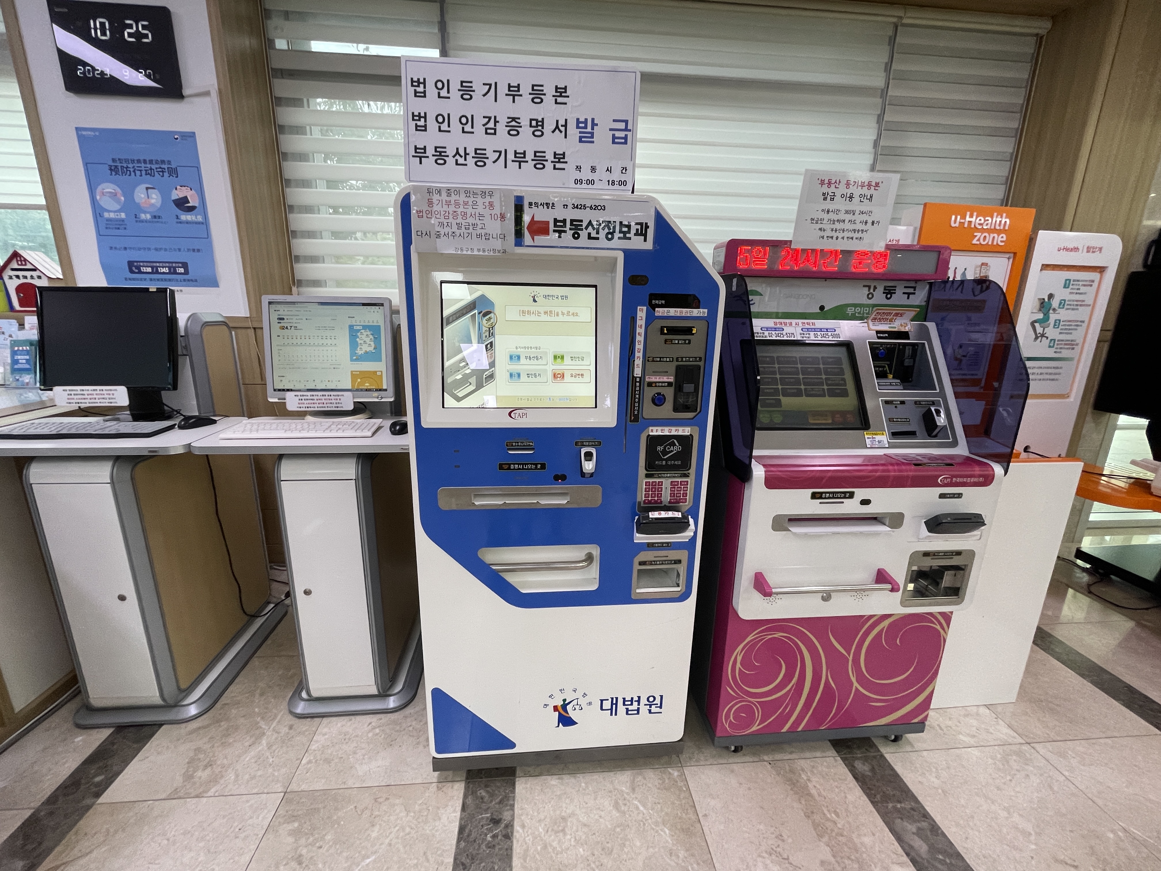 강동구청 민원과 한켠에 있는 무인발급기 앞으로 갑니다.